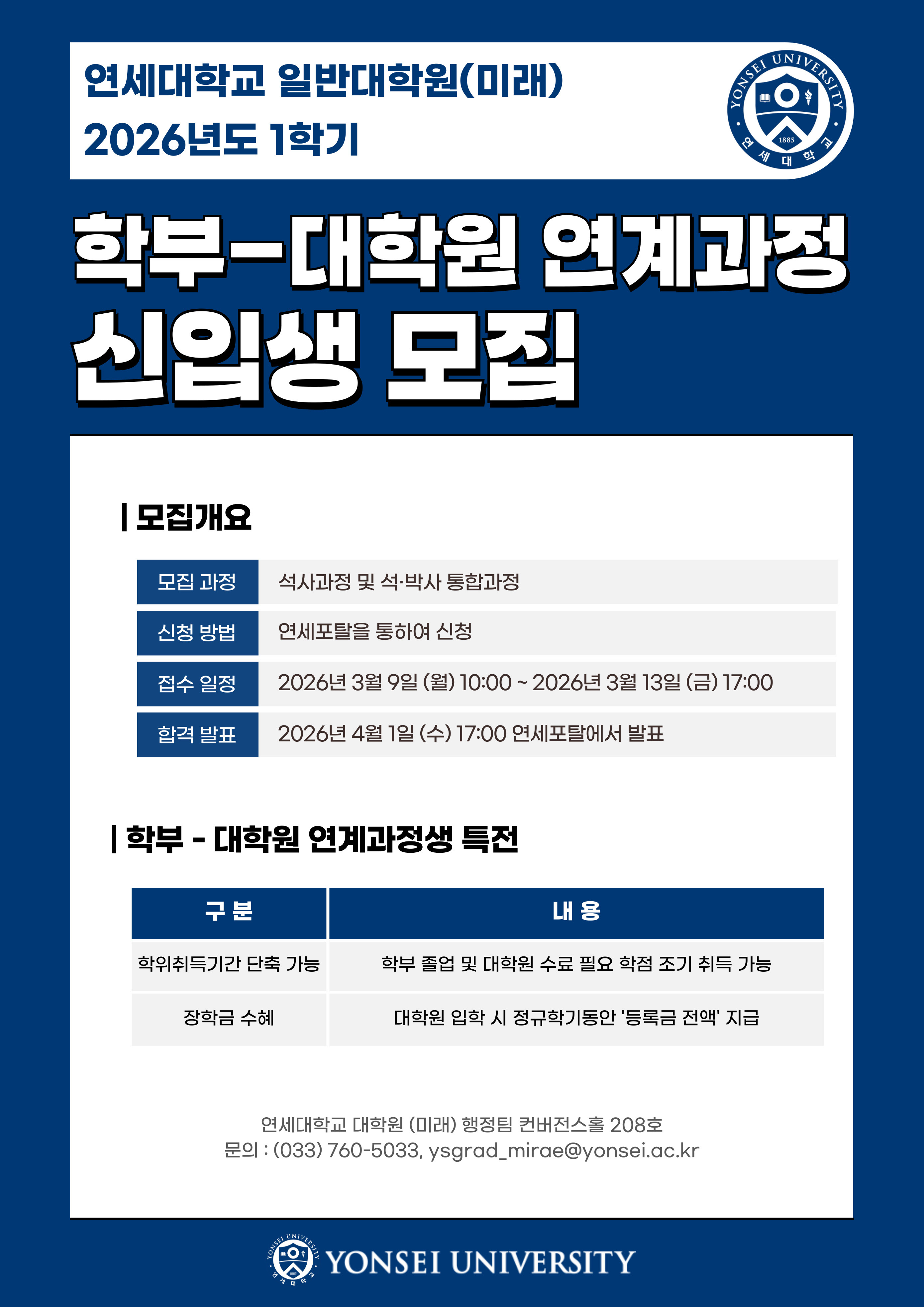 - 2026학년도 전기 학부-대학원 연계과정(석사 및 통합) 모집요강 안내